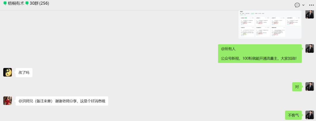 当我看到这个消息之后,立马登了个刚起步的小号后台,系统提示果真如此。顺手把截图甩到了社群里,给大家分享了这个好消息,给大家激动坏了。