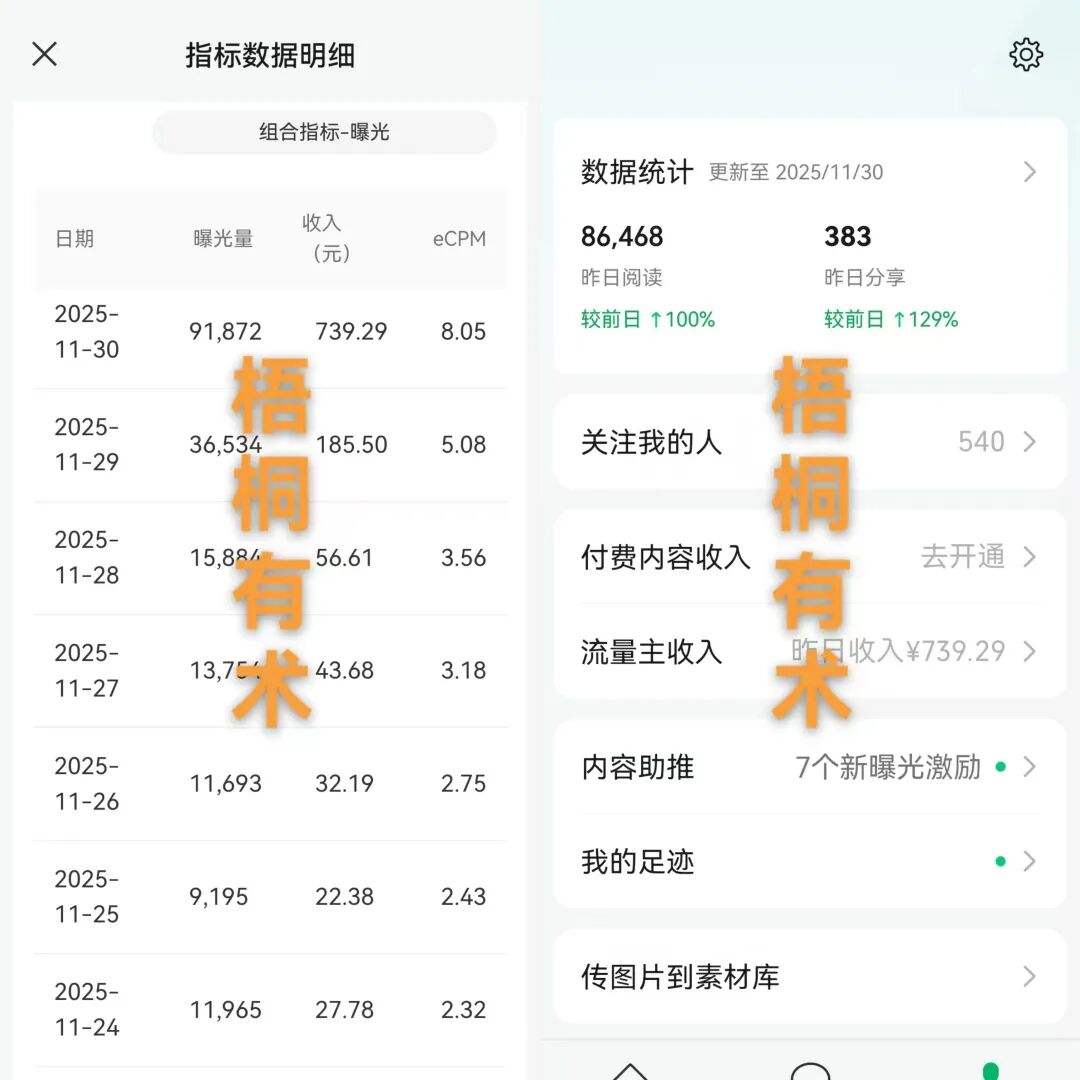 他这个号是满500粉后开通的流量主,昨日收入是739,真香!699的学费这不就挣回来了吗?舍不得孩子套不着狼,更何况这个账号才刚刚开始。